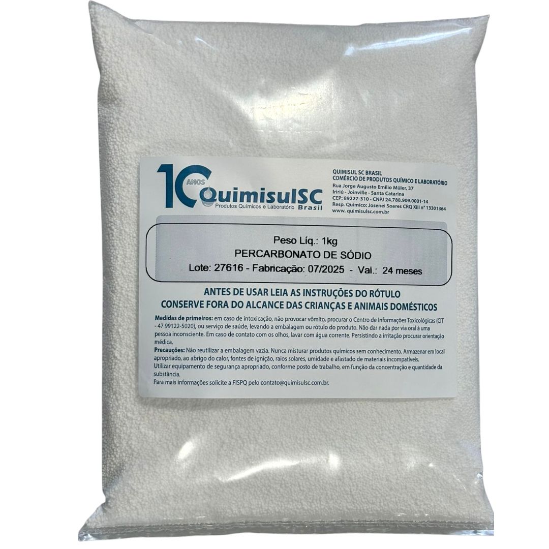 O Percarbonato de Sódio é um poderoso oxidante originado a partir da reação entre o Peróxido de Hidrogênio e o Carbonato de Sódio. Esse produto é comumente utilizado em sistemas de alvejamento com 13% de oxigênio ativo, substância que é facilmente liberada em meio aquoso.